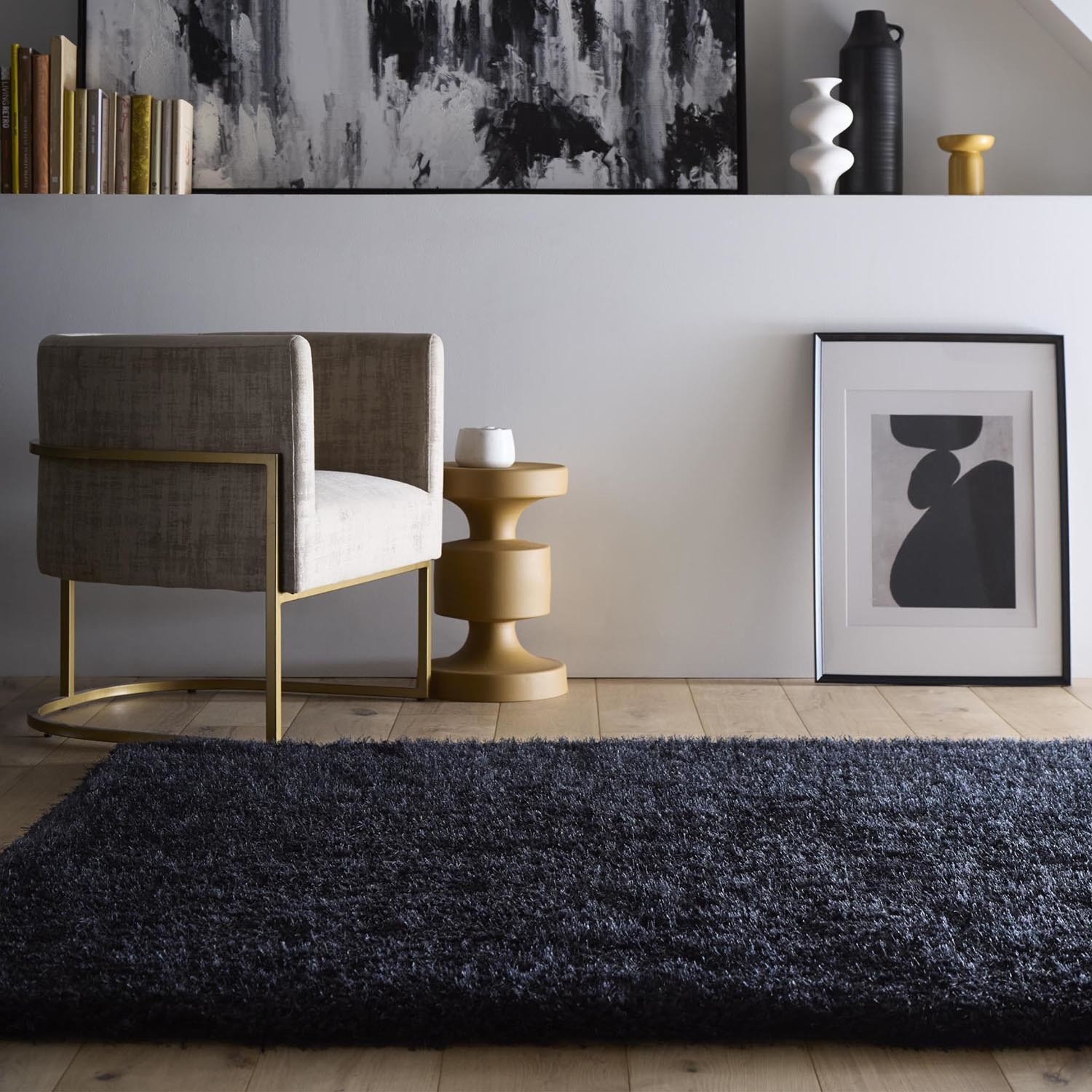 A long-standing bestseller in the Origins collection, the Chicago Black rug is a go-to for cosy, contemporary style. Its deep shaggy pile is irresistibly soft, making it a perfect addition to relaxing spaces like the living room, bedroom, or even a child’s playroom. Hand tufted from 100% polyester, this rug offers durability and a premium finish that holds up to everyday life. The dramatic black hue adds instant impact and pairs beautifully with bold or neutral palettes alike. Available in a range of sizes and colours, there's a Chicago rug for every home.