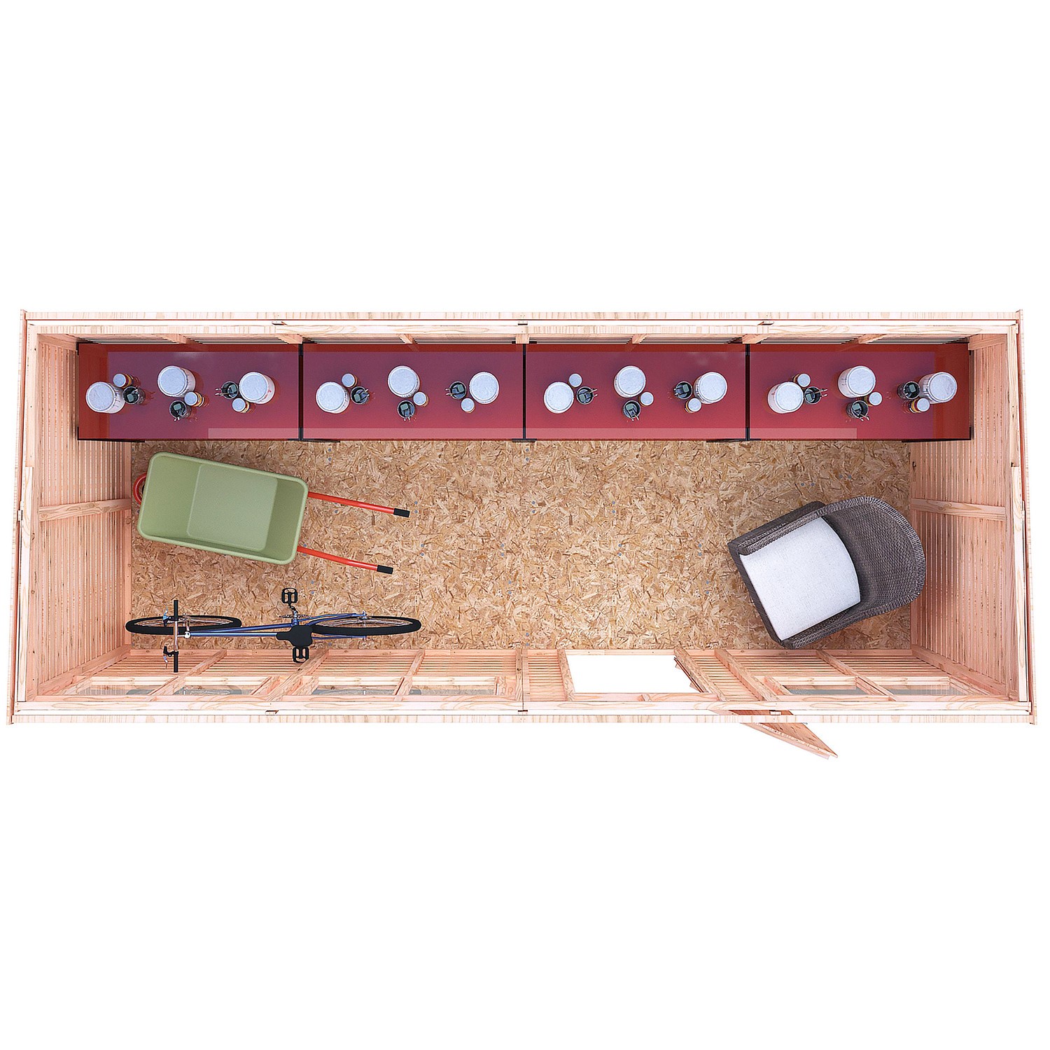 Light-Filled Interior: Windows allow natural light into the shed, making it easier to organise and find tools without additional lighting.