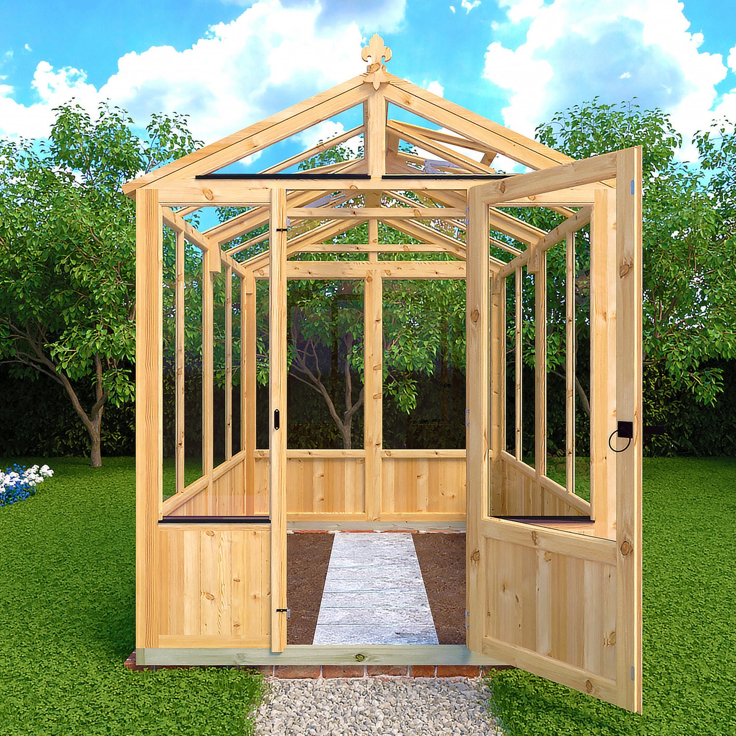 The Shire Holkham Greenhouse is designed to provide a bright and sheltered environment for growing a wide variety of plants throughout the year. Its classic timber frame construction creates a traditional garden feature while offering reliable support for the glazed panels that allow sunlight to flood the interior. This light-filled space is ideal for nurturing seedlings, growing herbs and vegetables, or protecting delicate plants from cooler temperatures and unpredictable weather. With convenient door access and a practical layout, the greenhouse makes it easy to tend to plants, organise trays and pots, and enjoy gardening in a more controlled environment. Combining functionality with timeless garden style, the Shire Holkham Greenhouse is a great addition for anyone looking to expand their home growing space.