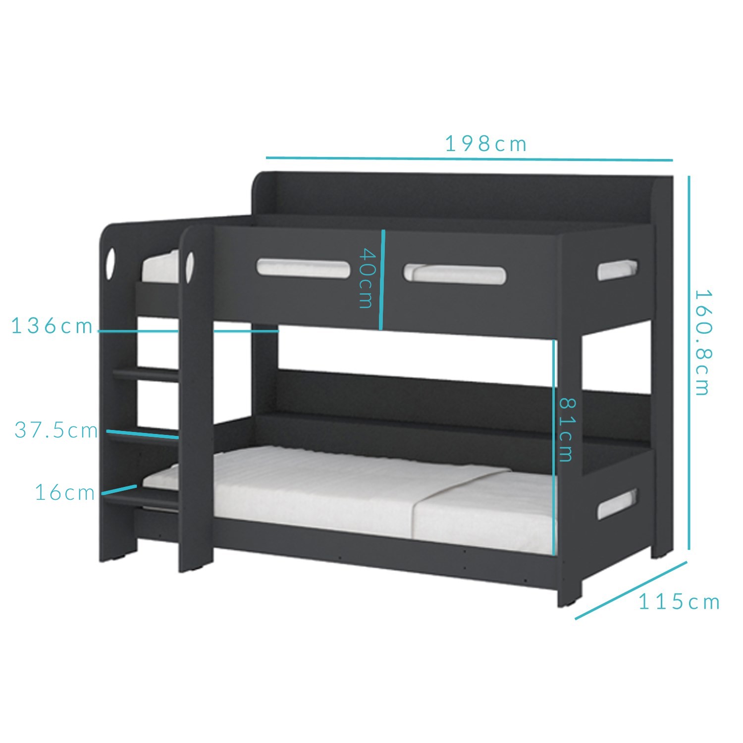 Sky Bunk Bed in Dark Grey - Ladder Can Be Fitted Either Side!