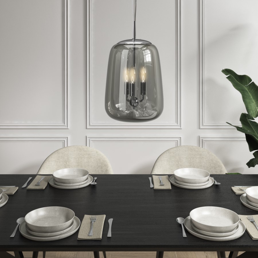 Give your home an instant style update with this smoked glass ceiling pendant. It’s striking thanks to the elegant glass shade, which encapsulates an understated beauty, while the contrasting silver metal work gives it a contemporary feel. It would look great in your hallway, living room or bedroom. It’s dimmable and LED compatible too, and also comes in smoke champagne glass and chrome.