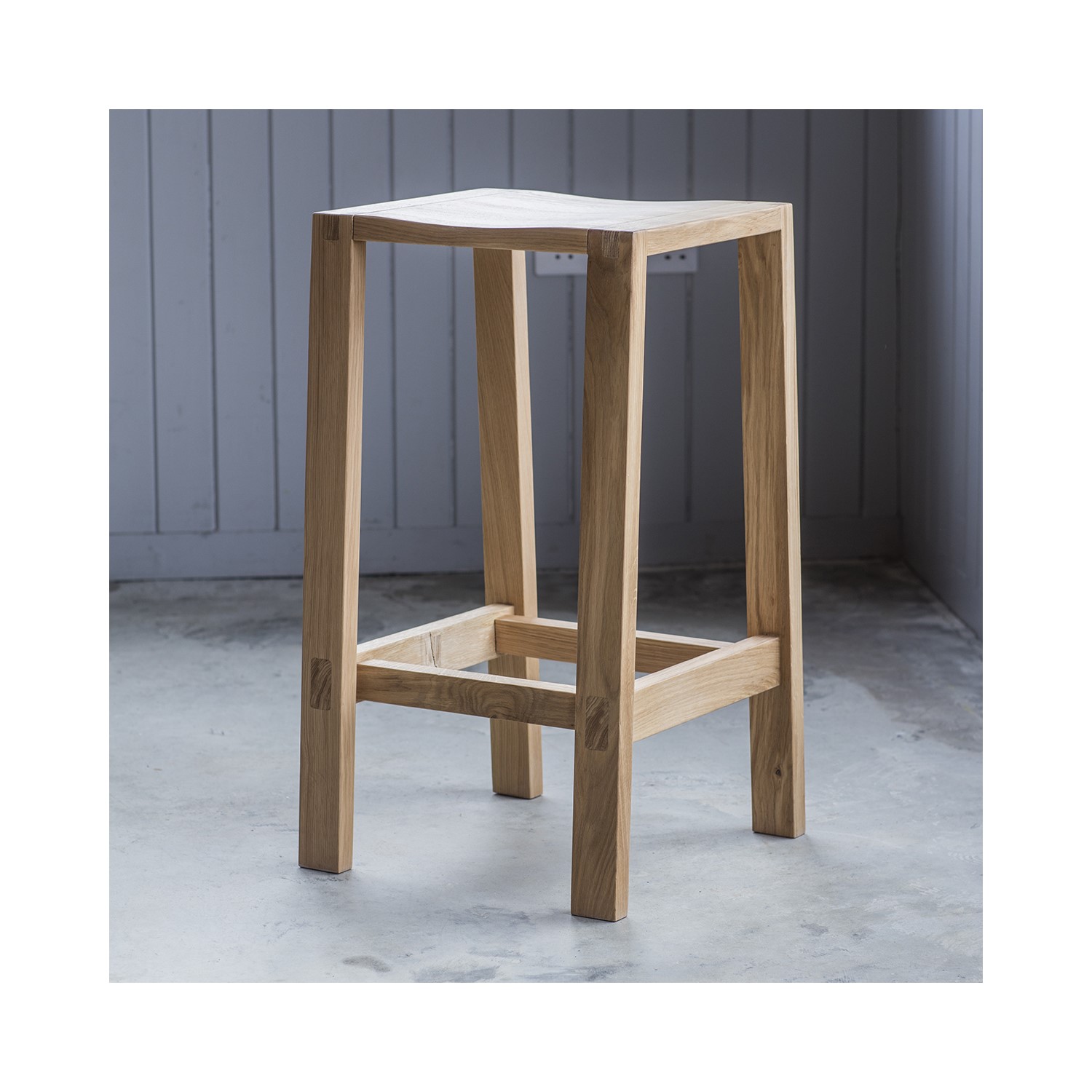 The Kyra bar stool crafted using beautiful mellow solid oak, using the planked and jointed build method. The curved seat provides comfort. Ideal for use with the Kyra bar table or under your kitchen island.