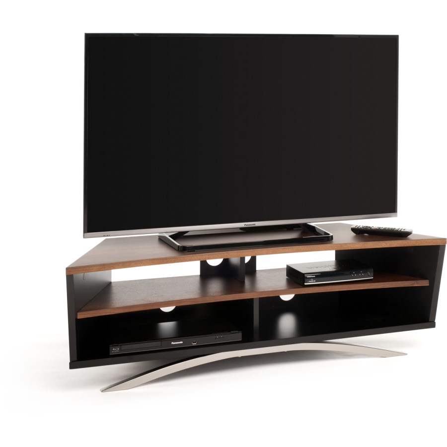 A concaved top panel complimented with contemporary contrast finishes and an angled front profile, the Prisma is perfectly poised to accommodate all your A/V requirements. Finished in real wood veneer and solid sating colour with a feature satin chrome foot.