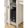 This chalked wood computer desk is finished in a chalked chestnut colour and hoasts a range of storage options - a storage drawer, filing drawer with full extension slides to hold letter size hanging files, and cupboard space with an adjustable shelf. There is also a slide-out keyboard/mouse shelf and cable management system so you can keep your desk clutter free.