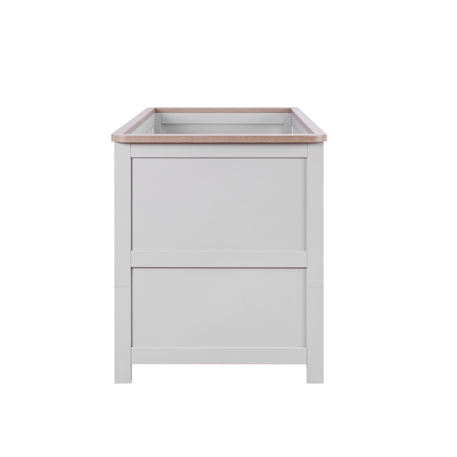 - Verona cot bed in soft dove grey and oak