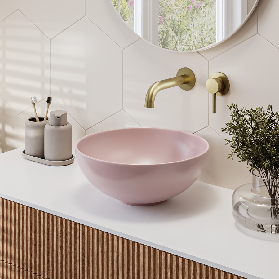 Create a contemporary feel in any bathroom with this stylish Verona countertop basin. Its gorgeous round shape with defined yet smooth edges stands out thanks to its striking matt pink finish. Compliment with an equally stylish extended basin mixer or wall-mounted tap. This basin is also available in white, pink and black.