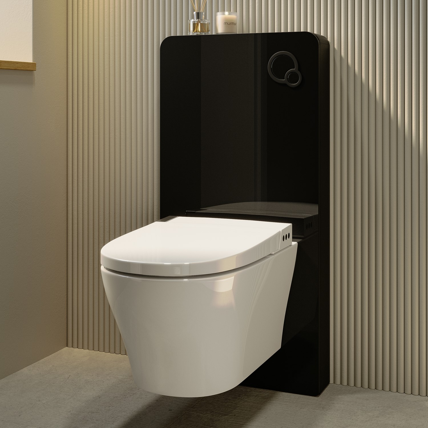 Hassle-free Installation: Our sophisticated concealed cabinet with built-in cistern comes with the round Purificare intelligent wall hung toilet. This allows easy retrofitting, no need to create stud walls or reroute hidden pipework, making it a quick and stylish solution for modern bathrooms.