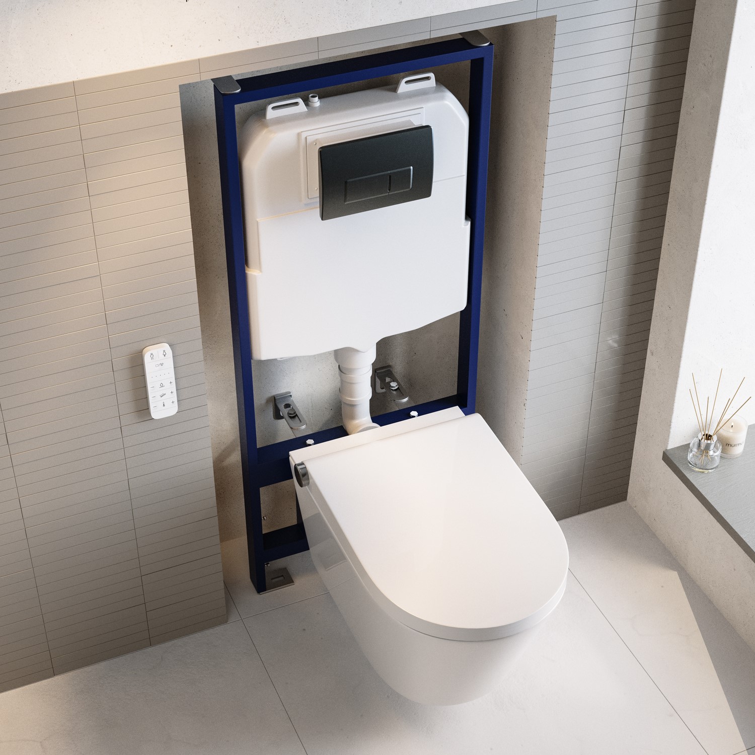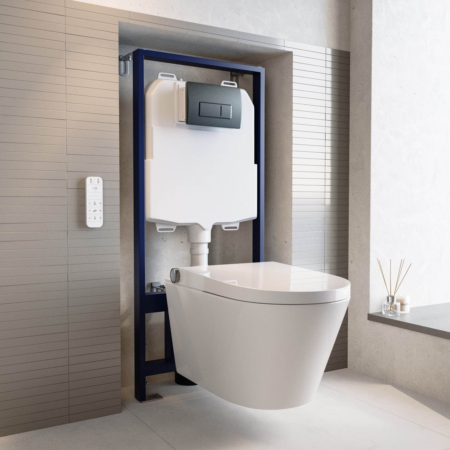 This toilet is complemented by the 1168mm Pneumatic Frame & Cistern offers enhanced stability, efficient water flow, a space-saving design, easy installation with minimal maintenance, and a high-quality, corrosion-resistant finish for long-lasting durability. The adjustable frame (0-200mm) allows for flexible installation to fit different wall configurations. Also, it's easier to clean as it's off the floor, giving the effect of a floating toilet.