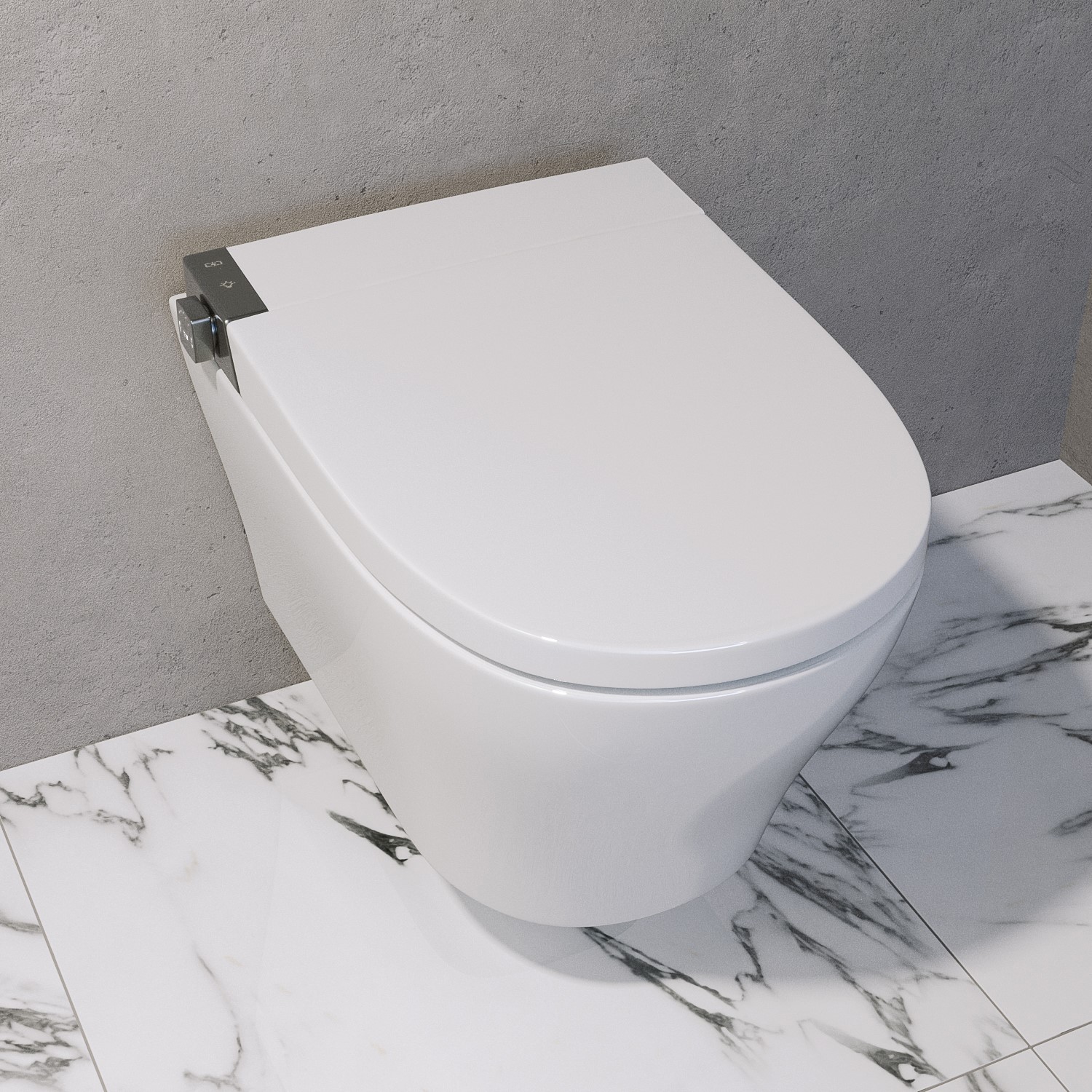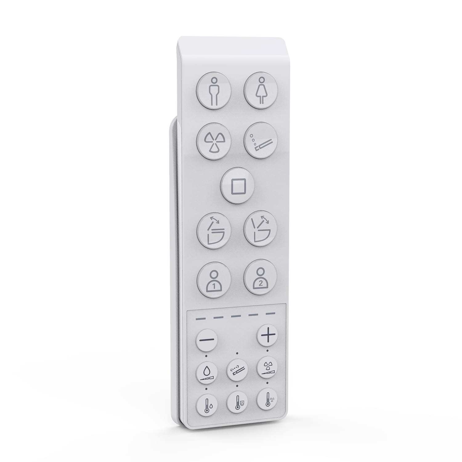 Control your smart toilet using the remote that attaches to a wall or via the on-seat control.