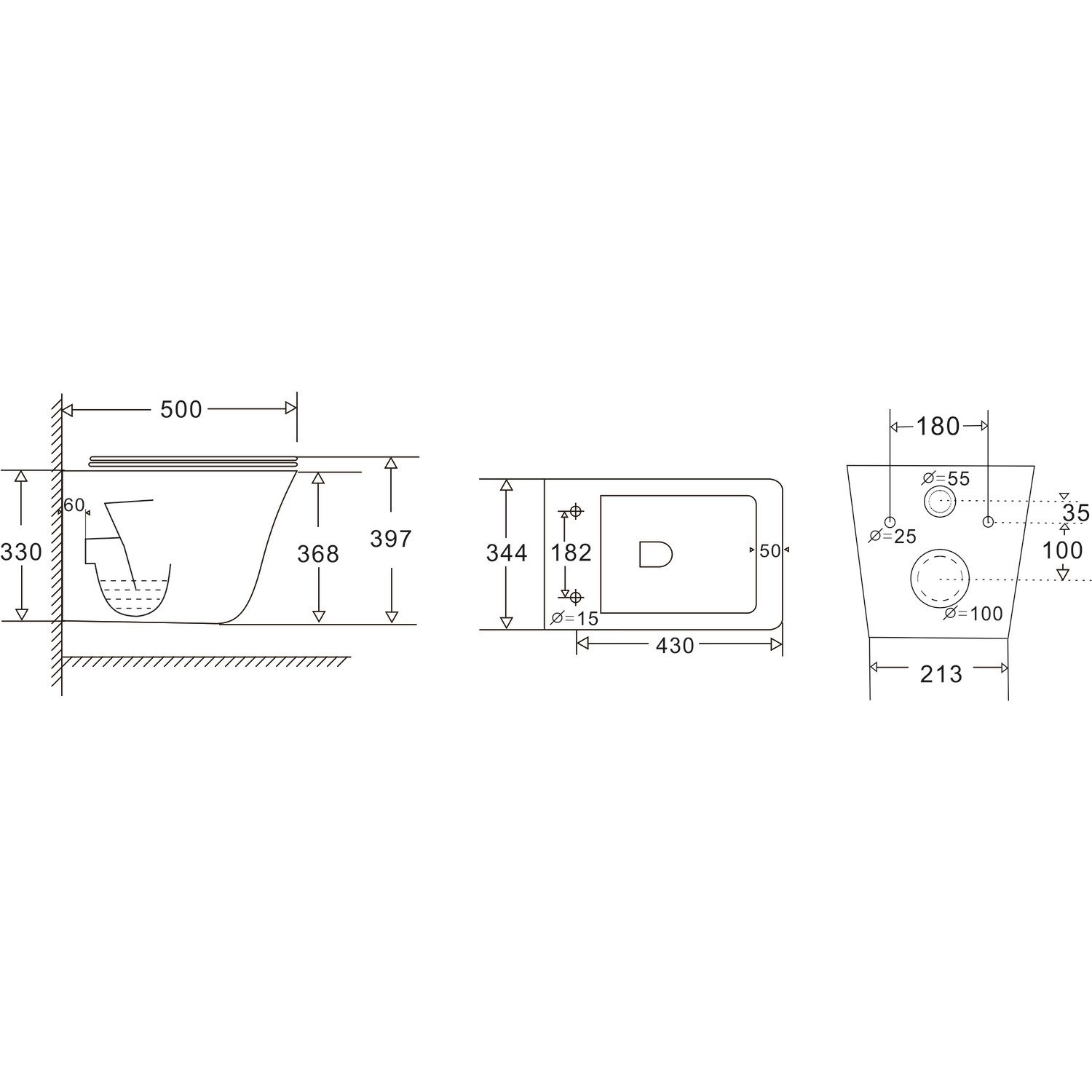 Transform your bathroom with the sleek Boston wall-hung toilet and Elira Brushed Bronze Pneumatic Flush Plate. Featuring a square design and gloss white finish, the toilet’s short projection is perfect for compact spaces. The rimless design improves cleanliness and water efficiency, while the soft-close seat ensures quiet operation. The wall-hung design saves floor space, offering a floating toilet effect with hidden pipework for easy cleaning.