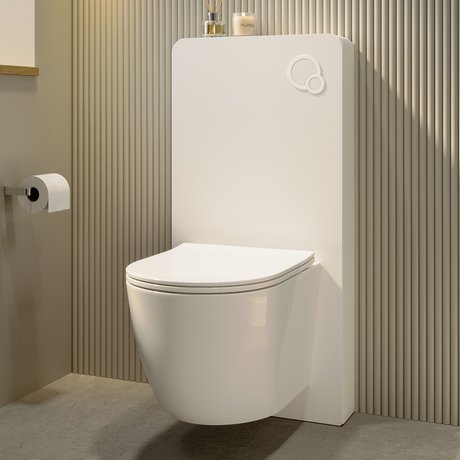 Hassle-free Installation: Our sophisticated concealed cabinet with built-in cistern comes with the round Roma wall hung toilet. This allows easy retrofitting, no need to create stud walls or reroute hidden pipework, making it a quick and stylish solution for modern bathrooms.