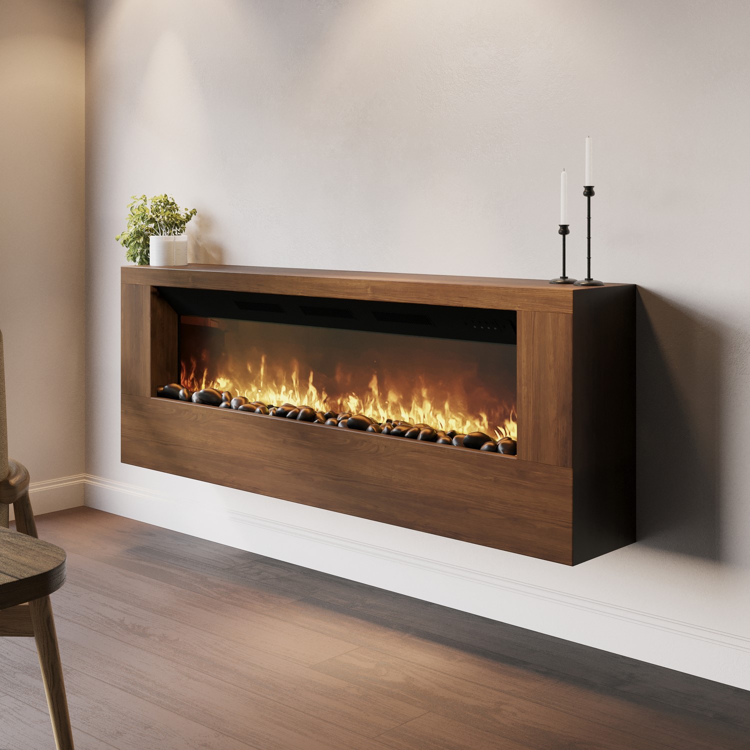Our 60-inch AmberGlo electric fireplace is more than just a heat source—it’s a centrepiece. Wall-mounted with a sleek glass finish, it brings stylish sophistication to any modern living space. With 7 switchable flame effects, 10 top light colours, and adjustable flame brightness, you can set the mood to suit every occasion. The smart features are where it really shines; Wi-Fi and Tuya app compatibility give you full control from your smartphone, while the included remote adds extra ease. With up to 1800W of heat, a quiet fan, adjustable digital thermostat, and weekly timer, it’s as practical as it is eye-catching. Whether you want cosy warmth or just the soothing flicker of a flame, this fireplace offers year-round comfort with a touch of luxury.