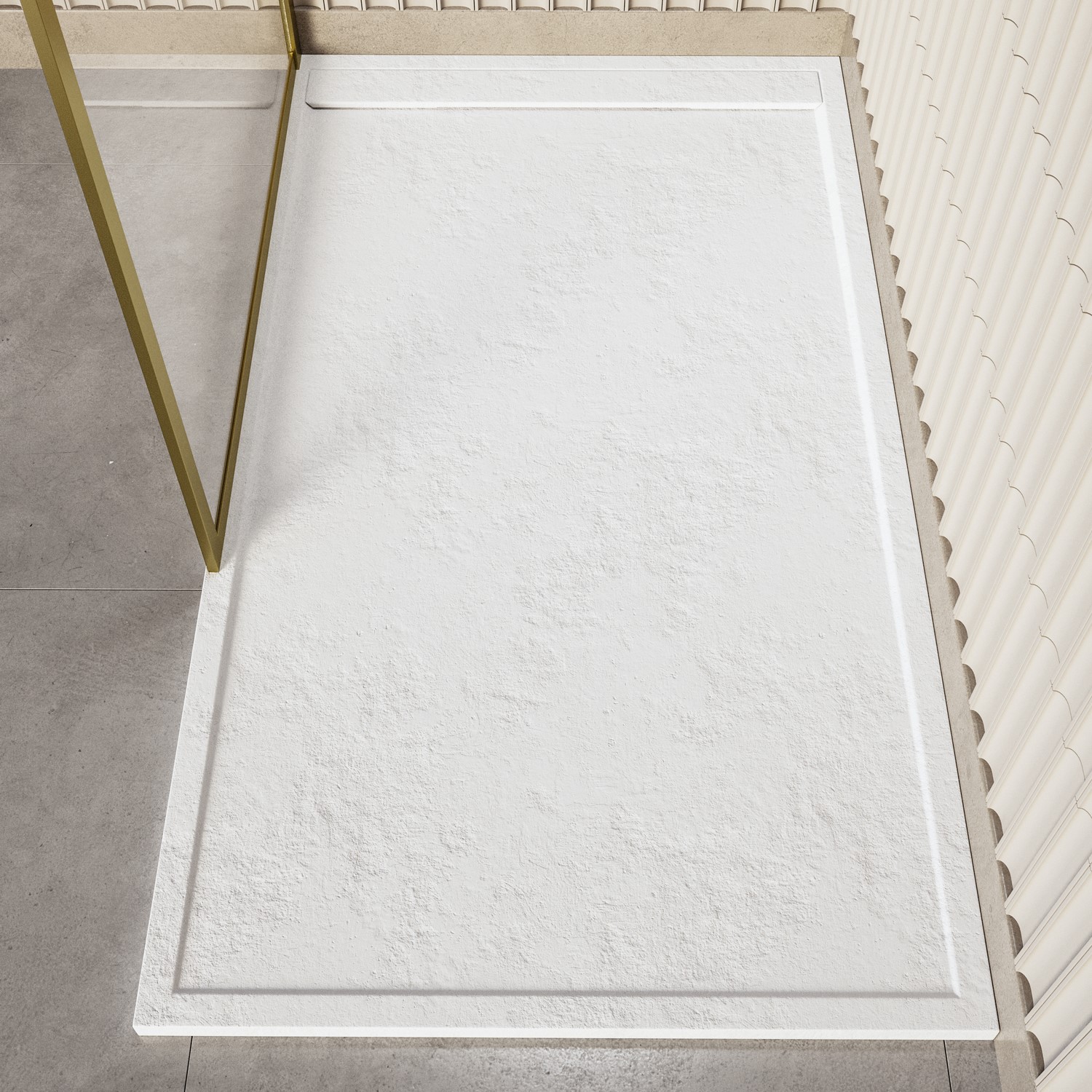 Slate-Effect Finish: Premium white surface with a subtle textured finish, perfect for creating a calm, spa-inspired feel.