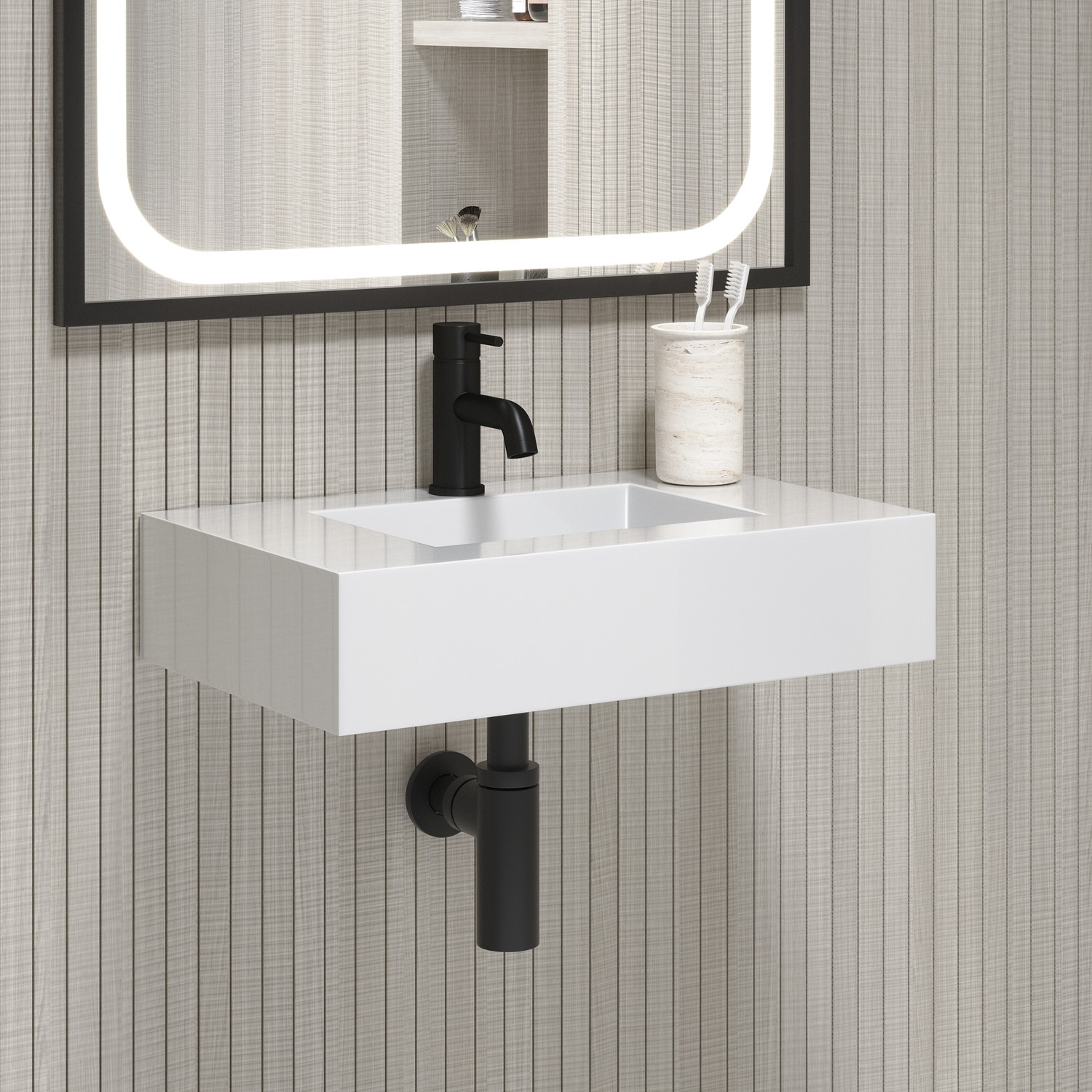 Transform your bathroom into a modern sanctuary with the 600mm wall hung resin basin with built-in drain. Its floating design elevates your bathroom style while maximizing space with the open area beneath. This basin is crafted from durable resin, offering excellent resistance to everyday wear and tear like cracks and scratches, making it perfect for daily use. The gloss white finish brightens your room and simplifies maintenance, making it pristine with minimal effort. Designed with functionality in mind, the Oslo basin includes a pre-drilled tap hole and a built-in drain for seamless installation and use. Pair with one of our decorative bottle trap to complete the look.