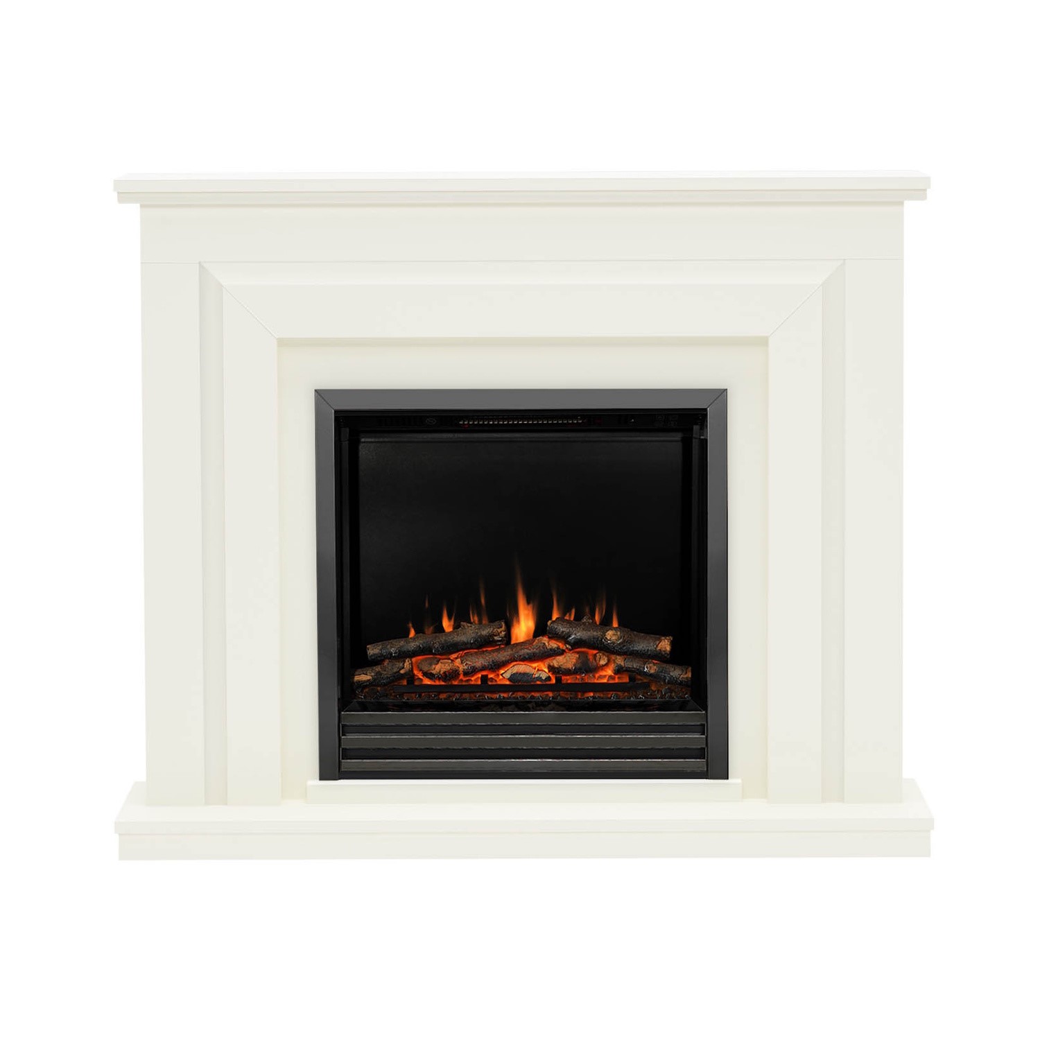 The strong symmetrical lines of the Whitham look simply divine set deep in a magnificent soft white painted finish. The Whitham captivates anyone that rest their eyes upon it, entrancing spectators with realistic flames set in a widescreen electric fire with black nickel 3 bar fret.