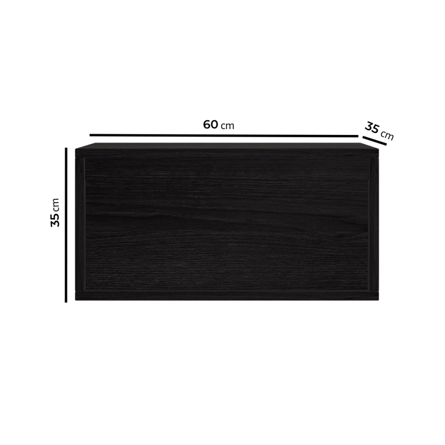 This wall-mounted bedside table combines style with practicality. Its clean lines and black wood finish create a modern look that enhances any bedroom. The handle-less push-catch cupboard door opens smoothly to reveal hidden storage for your essentials. Wall-mounted for a floating effect, it frees up floor space while keeping your bedroom feeling open, uncluttered, and functional.