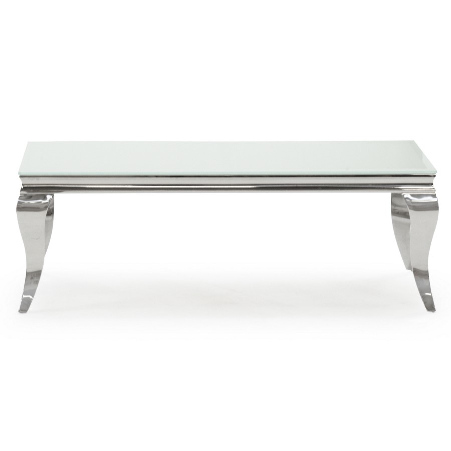 This stylish Louis coffee table is sure to make an impression on guests. The unique and elegant design will add a touch of class to your space, creating a stunning focal point for the living room. It features a curvaceous frame which gives the table a feminine touch. The combination of sleek materials come together to create a luxurious look. The steel legs have been polished to perfection whilst the smooth, tempered glass, white table top reflects light beautifully.