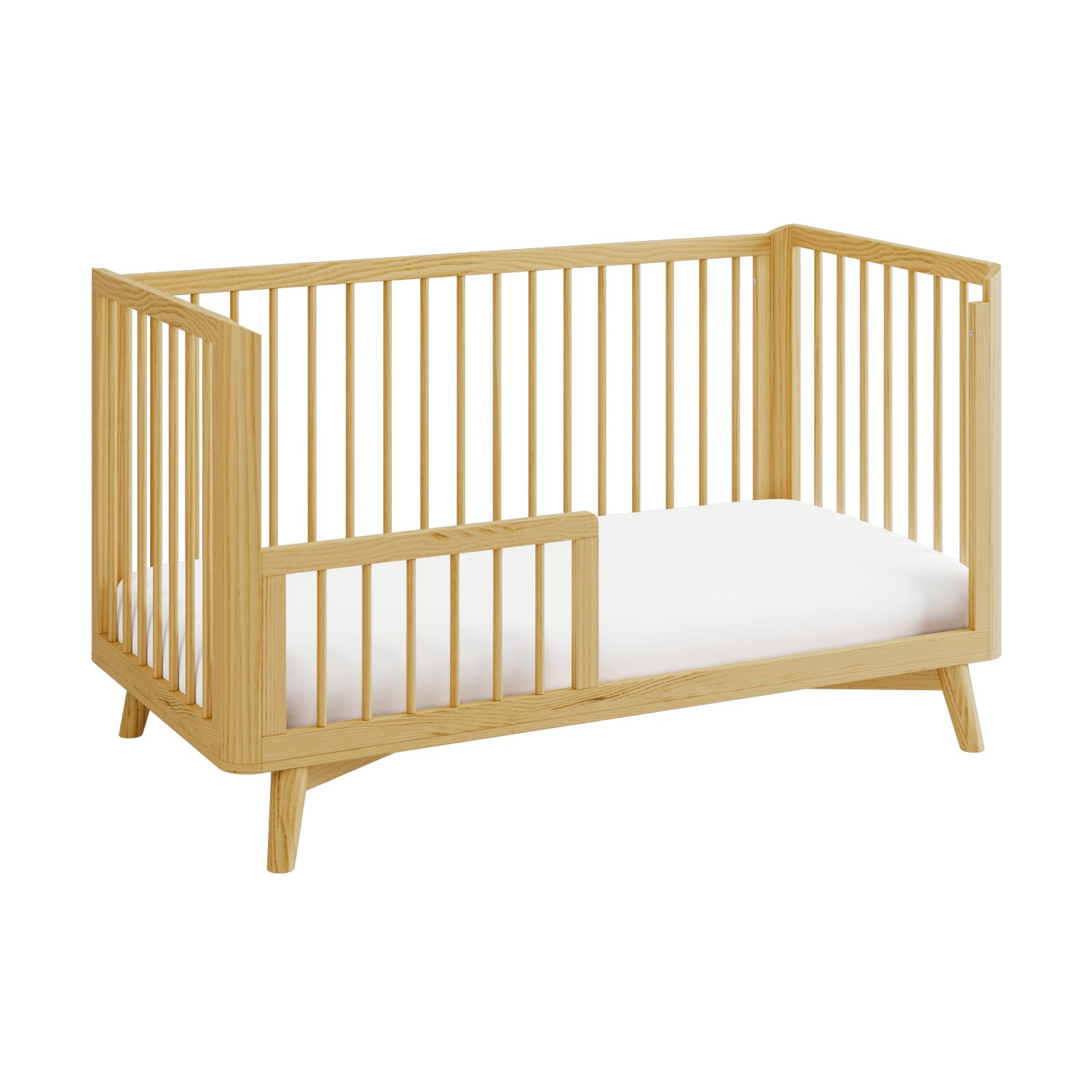 Stylish Scandinavian Design: Its retro-inspired aesthetic and warm natural pine finish blend seamlessly with any nursery décor.