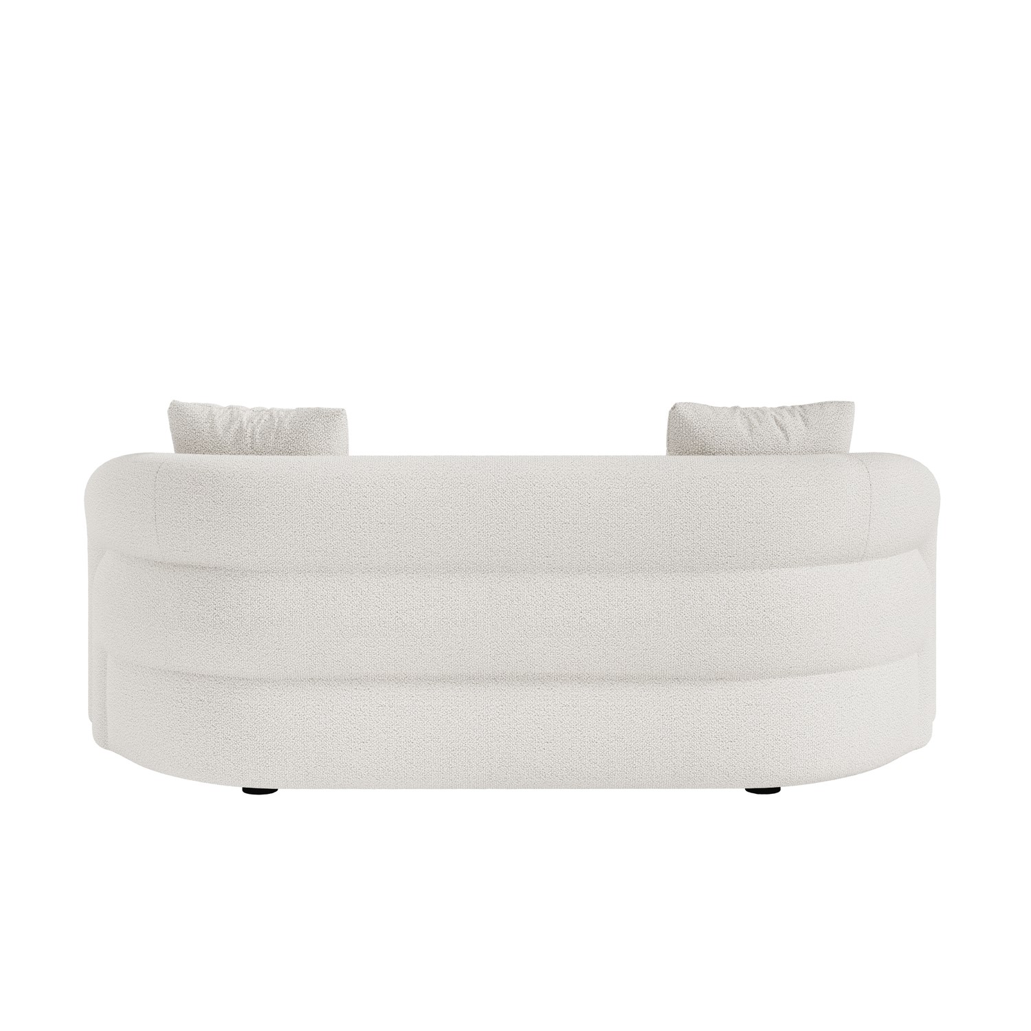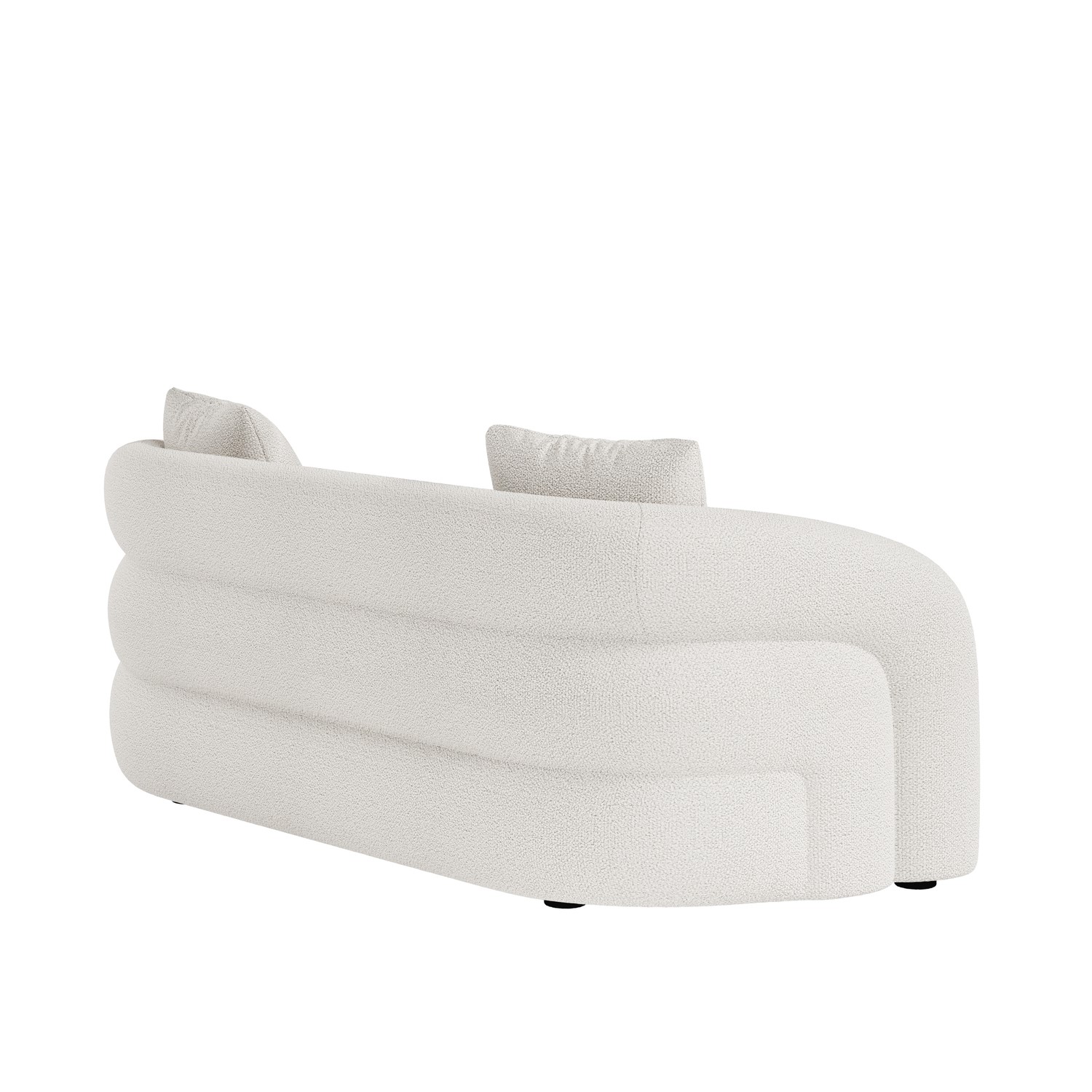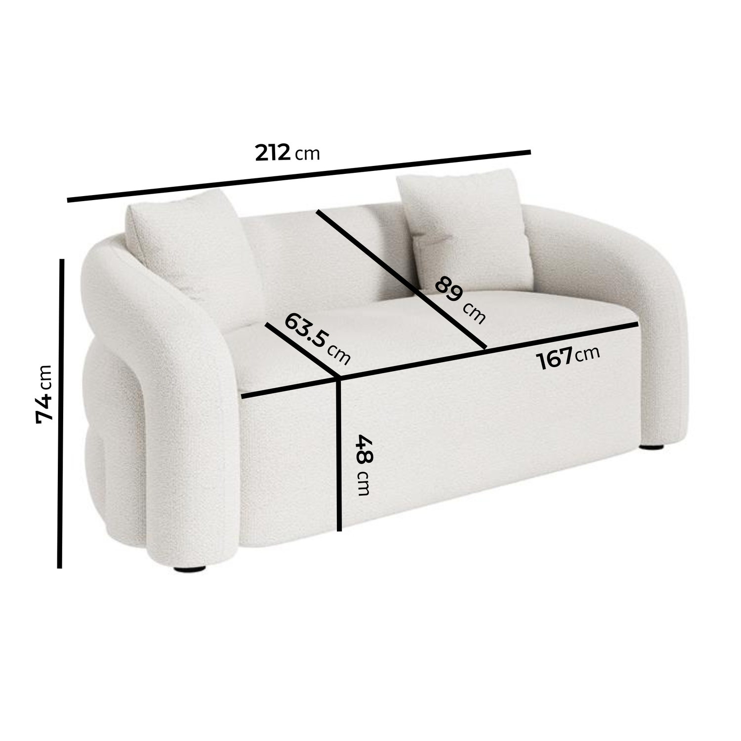 The Zuri 3-seater Curved Corner Sofa combines style and comfort with its inviting curves and layered cushioning, creating a cosy and classy feel in any room. Wrapped in a soft, textured bouclé and featuring pocket springs with a foam filling, it offers a cloud-like feel with firm, cushioned support, complete with two matching scatter cushions for added comfort. Its modern curved shape brings a fresh, contemporary look, making it perfect for relaxed lounging and the ideal centrepiece for both stylish and welcoming living spaces.