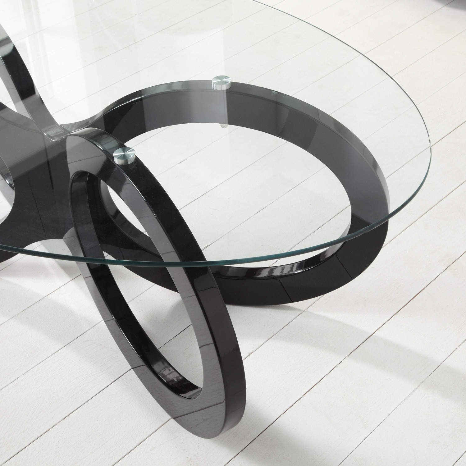 The curvaceous looped base is manufactured from a strong wood blend, finished to a high standard with a smooth high gloss lacquer in striking black. The spacious oval top is strong clear tempered glass. Giving you a robust and stylish coffee table.