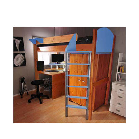 With a fusion of ideas to free up room, the Stompa Casa Kids Natural Highsleeper Bed in Blue with Desk and Wardrobe will sort out that clutter once and for all. The clip-on shelf and wardrobe offer versatile and imaginative options that will tidy their bits and pieces while the desk with monitor shelf provides a cosy study area. A slatted base ensures great mattress support while the safety rails will keep your child secure.