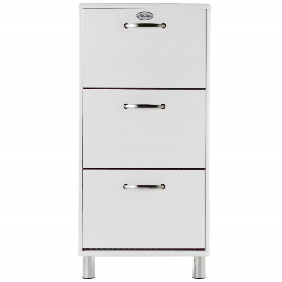 Quick Feature Summary: • Compact and neat design• Clean and frersh style • Smooth matt white finish • Stylish metal handles and feet • 3 Convenient fold down flaps • Each compartment holds 3 pairs of shoes • Manufactured in Sweden • Also available in black, red and yellow |