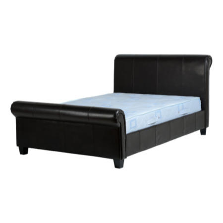 Sleek leather look upholstery, and a graceful sweeping shape makes the Tuscany Sleigh Bed the perfect place to slumber in style. With a rich, dark brown finish this bed can add a sense of refinement and grandeur to any bedroom, creating a sleeping environment guaranteed to make the end of the day seem like a genuine reward.