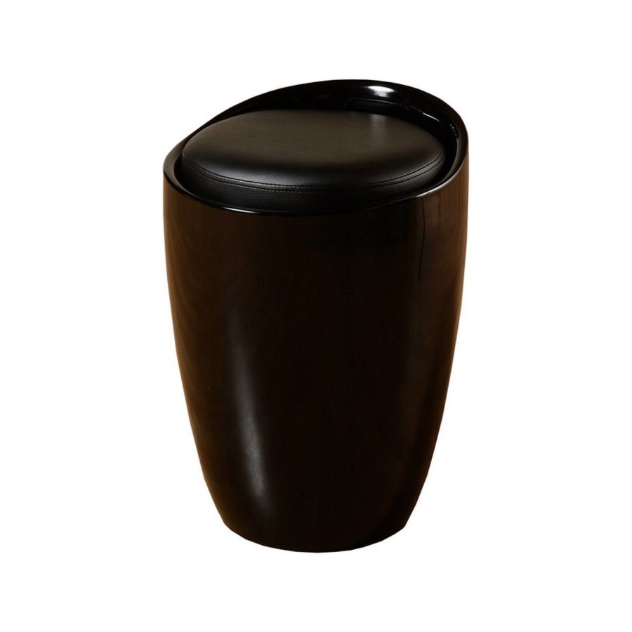 Compact and contemporary, the Wizard Storage Stool in Black is the perfect little accent piece for your living room. The seat pad is removable to allow storage of your bits and pieces, ideal for homes short on room. An integrated handle allows this storage stool to be easily and discreetly transportable. Plus, the sleek black upholstery makes this footstool great for adding a cosmopolitan touch to decors.